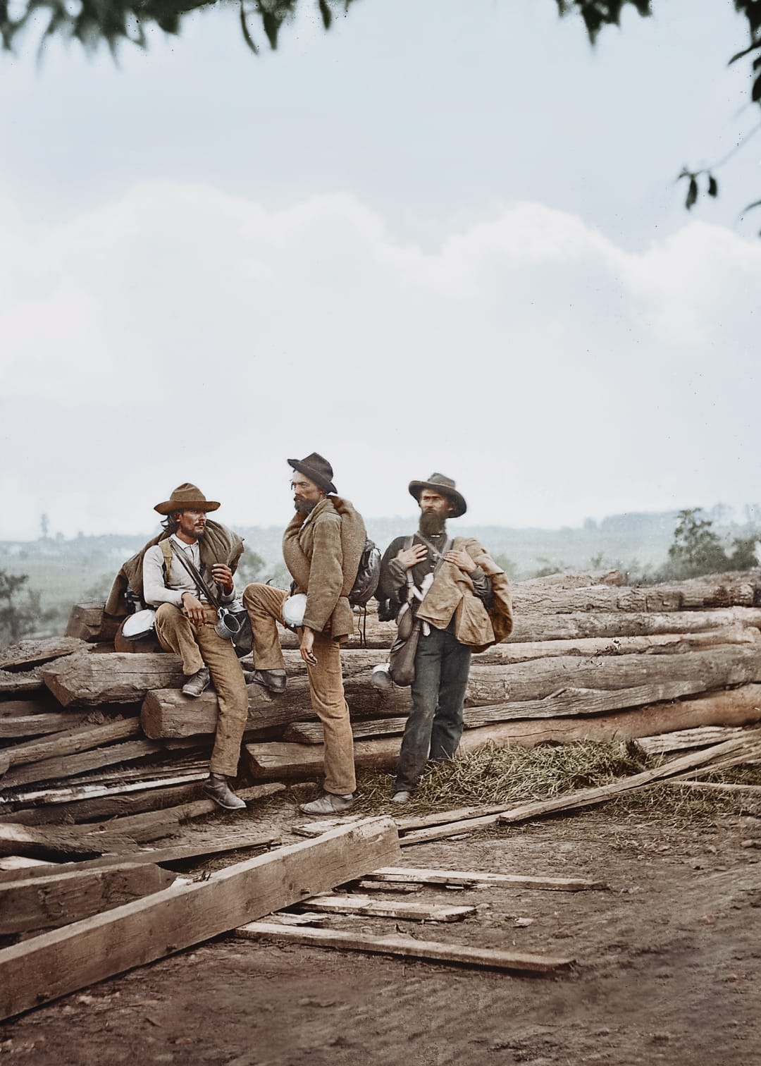 During these same years, teams of private and military photographers were hard at work at the encampments and battlefields of the front line, capturing the reality of war like never before. Another of the images in the Unseen Histories Archive provides a fine example of this. It depicts a trio of Confederate prisoners resting at Seminary Ridge during the Battle of Gettysburg in 1863.