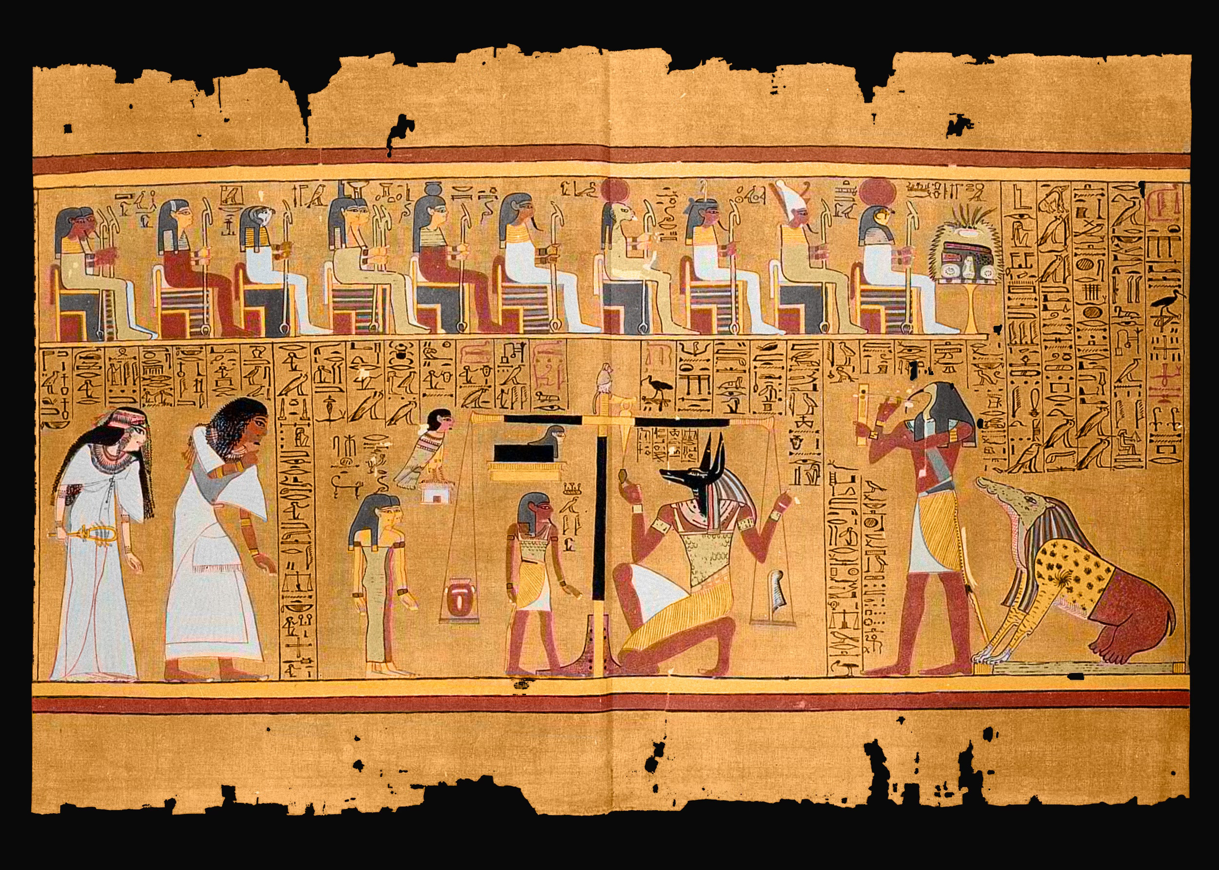 For the Duat was a terrifying place. It was filled with dangerous beings, whose sole purpose was to frustrate the deceased's progress, from men, gods and spirits of the dead to strange demons – creatures that walked upside down, drank blood and ate their own excrement and entrails. To make it through safely, the deceased had to call on the Book's magic - pronouncing its spells and performing rituals over specific objects – or rely on good old-fashioned weapons. But the afterlife wasn't all bad. In death, each person became an Osiris – they even used his name as a title – and so partook in the god's powers and regeneration. Some deities provided food and aid, while the deceased, through magic, could transform into certain gods - including Atum-Khepri, Shu and even Re – and use their powers and influence to aid their journey. The spirit could also change into various creatures: a crocodile, a snake, a falcon, a phoenix and a swallow among them. Because of the advantages such magic gave the dead, demons often tried to steal their magic and had to be repelled with spells.