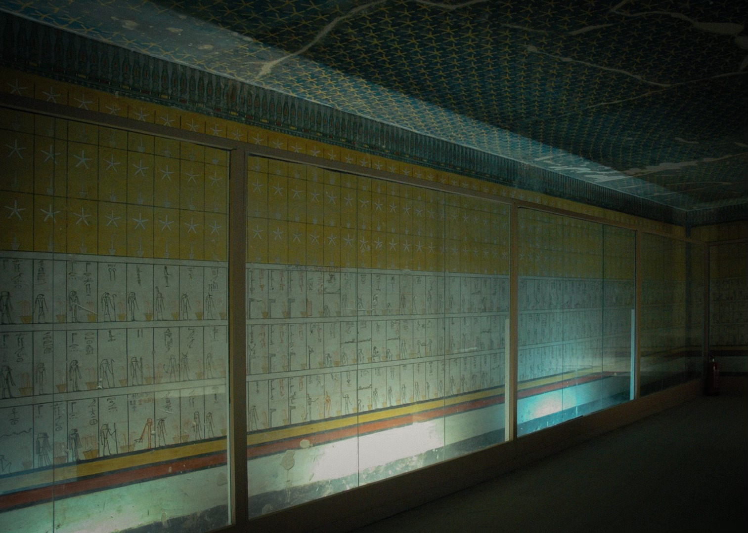 They are a complex guide to the king's afterlife in the netherworld realm of the Duat, including a detailed catalogue of gods and demons and an explanation for the sun god's disappearance at night. Most importantly, they represent the eternal struggle between order and chaos, in which the king, united in death with the sun god Re, fights to keep the cosmos active. The drama of these scenes is at odds with the quiet of the tomb. I hear the gentle hum of an air pump. The chatter of visitors, echoing from other corridors. The shuffle of the tomb guardian's sandals. For a moment, I am elsewhere.