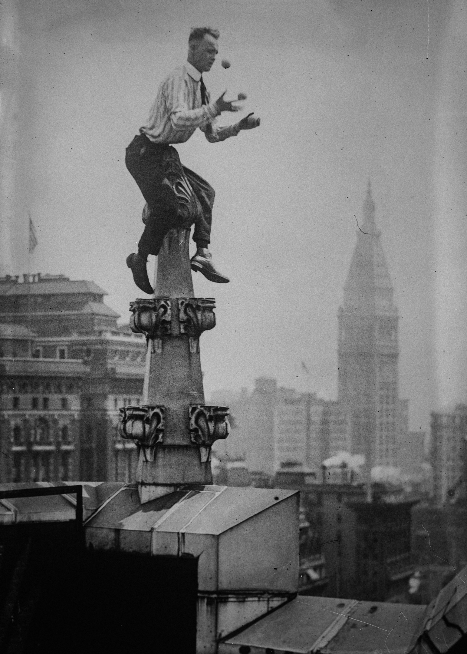 Other stories maintain that he was once a diver at a local fairground and that, at length, he took up tightrope walking 'and was one of the few who did not use a net under his wire'. Juggling was said to be another passion and Johnny certainly spent time in Vaudeville - America's equivalent to Britain's 'music hall'. Eventually, however, Reynolds 'conceived the idea of clambering over buildings for exhibition'.