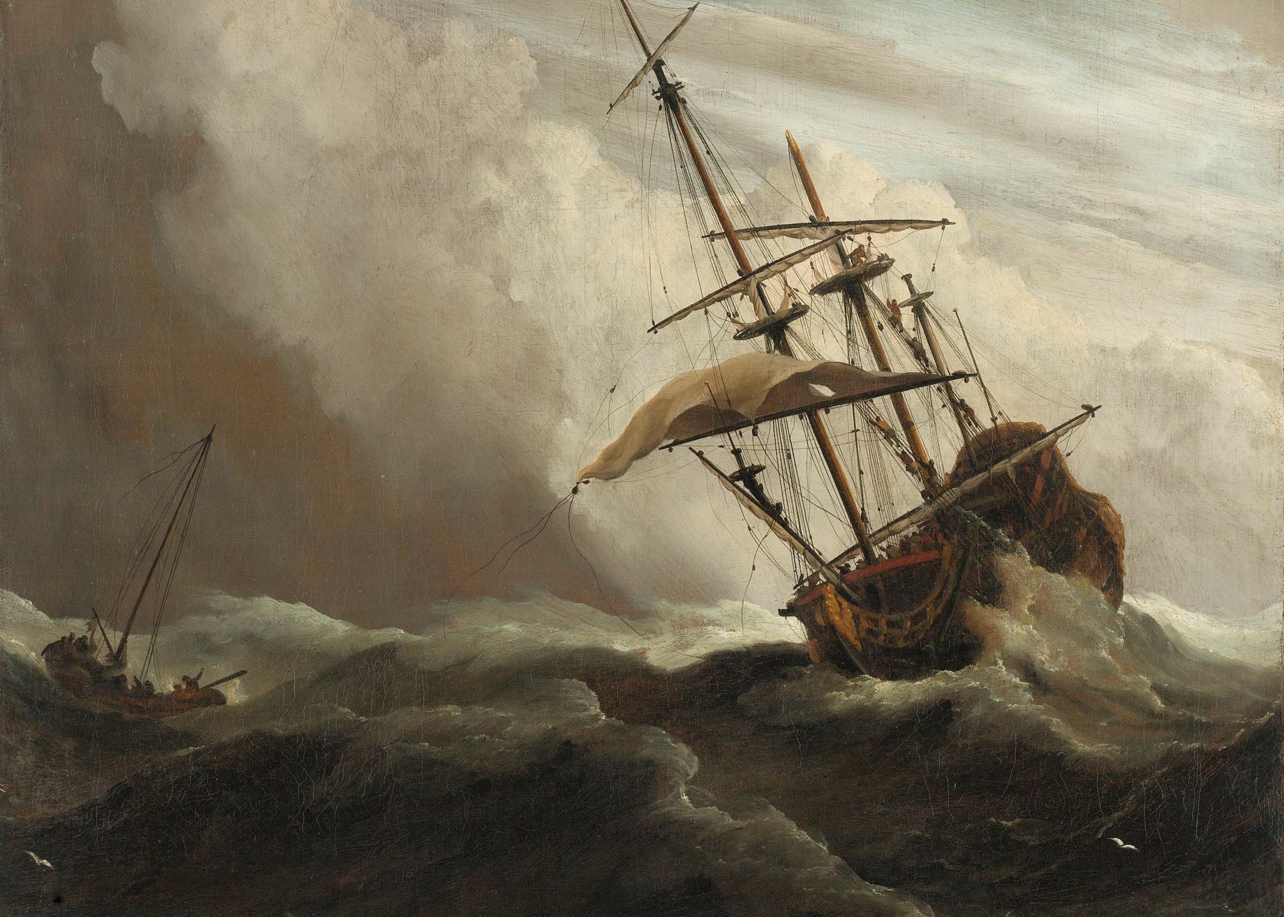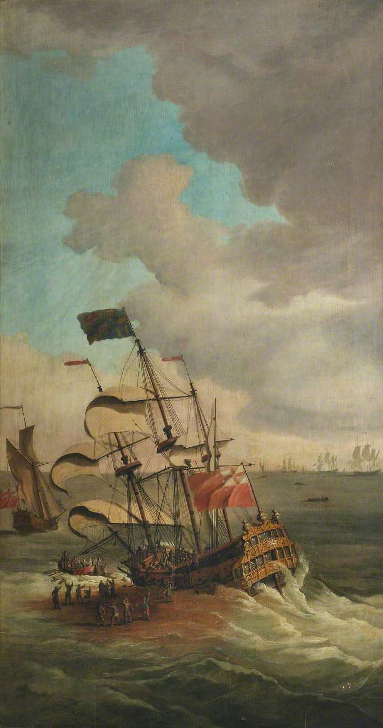 By this stage it would probably have been best to try and anchor on the bank in an attempt to stabilise the movements of the ship. ‘However, the lifting of the sea forced her off the sand, and she went into fifteen fathom water, before we could let go one anchor, which proved the loss of many poor men’s lives.’ Once in deep water they did succeed in letting go the anchors: